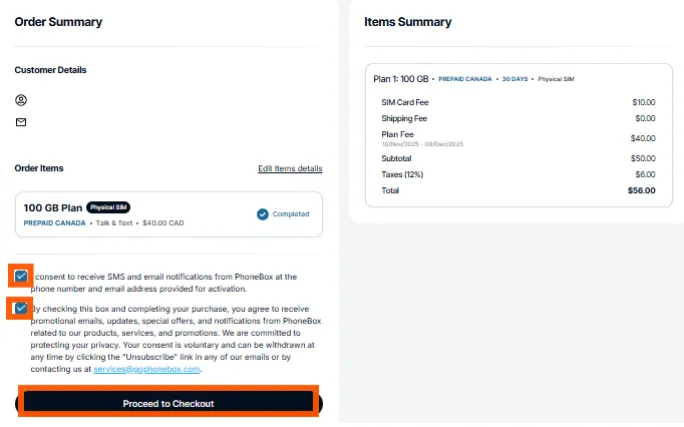 同意にチェックをし” Proceed to Checkout”をクリックします。