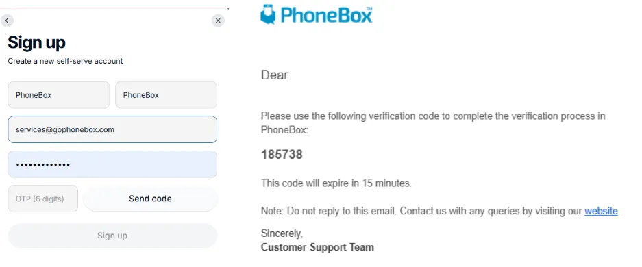 お名前、メールアドレス、お好きなパスワードを入力し、Send Codeをクリックします。