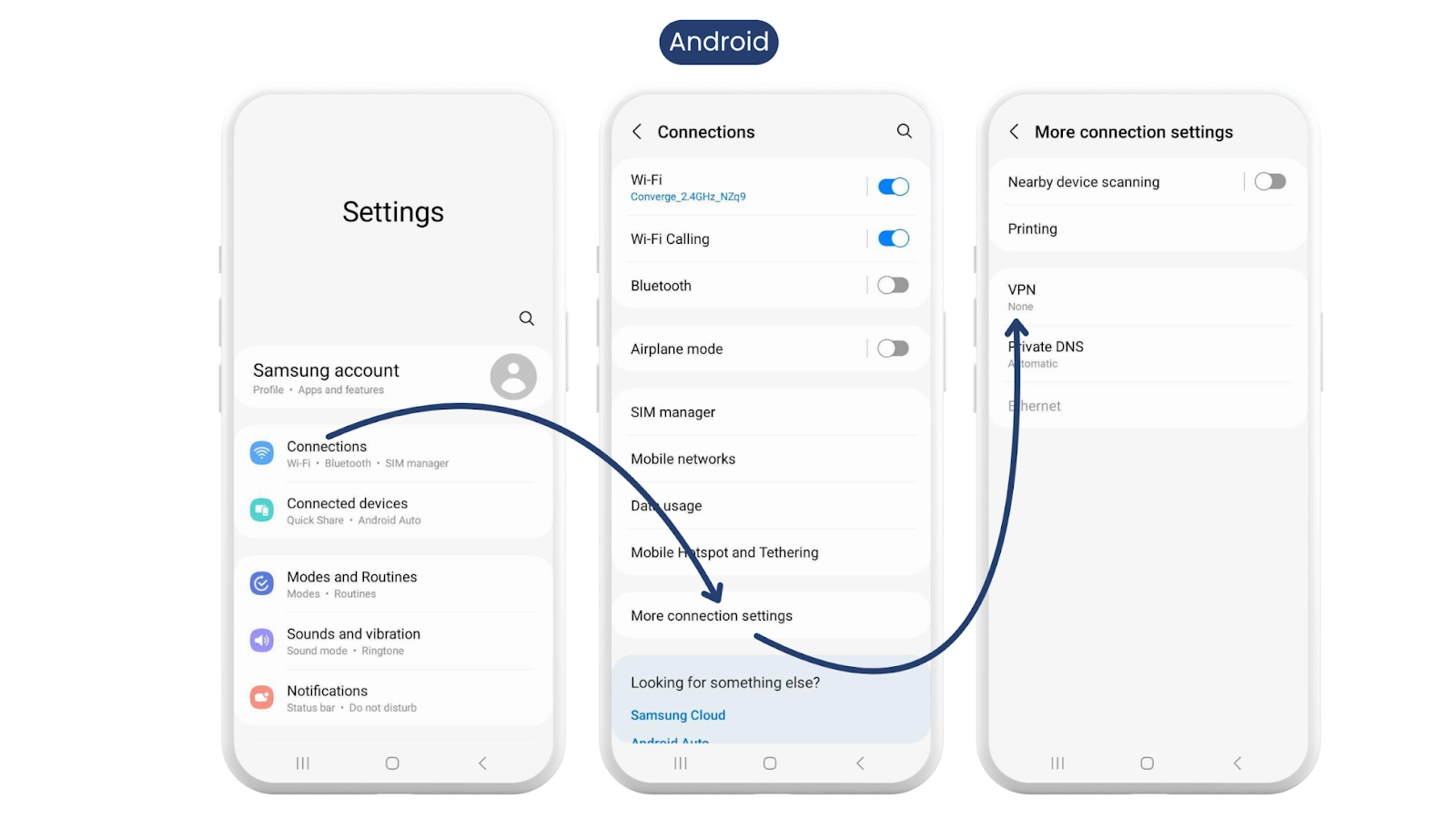 設定 > 接続 > その他の接続設定 > VPN