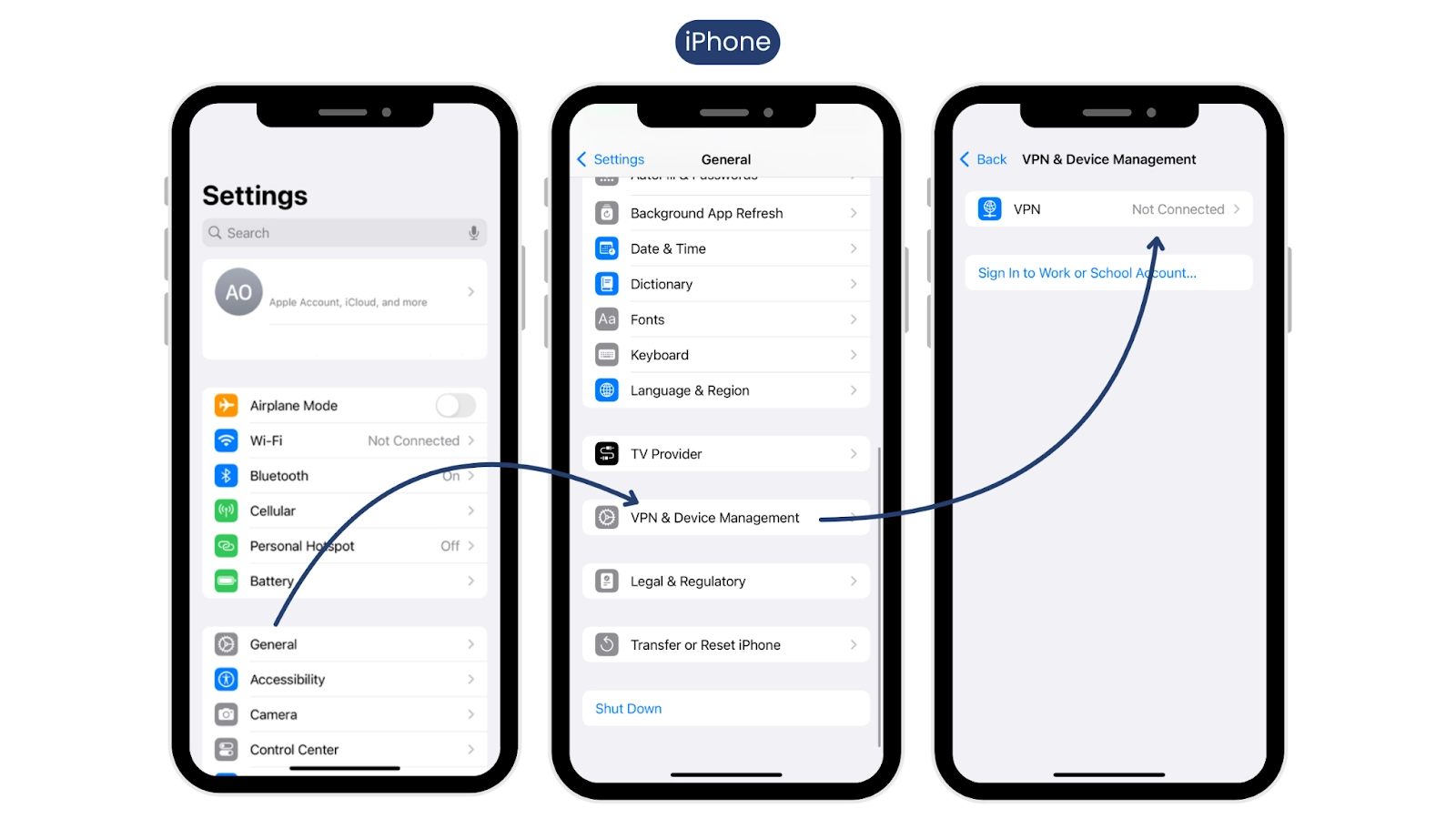 設定 > 一般 > VPNとデバイス管理