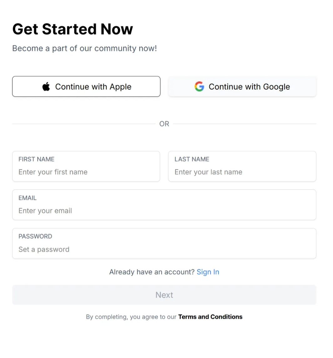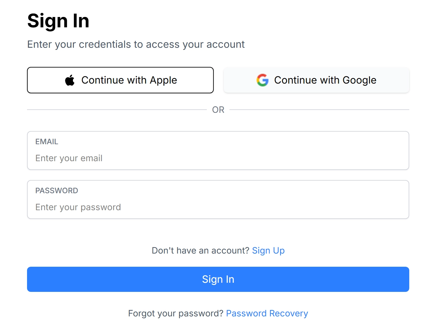 サインアップした後、先ほど入力した メールアドレスとパスワード、または Apple / Google アカウント でログインしてください。