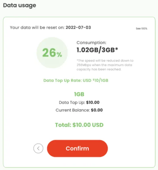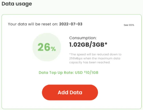 Pour utiliser notre service avec la vitesse 4G LTE dans la période actuelle, les clients devront recharger les données :
