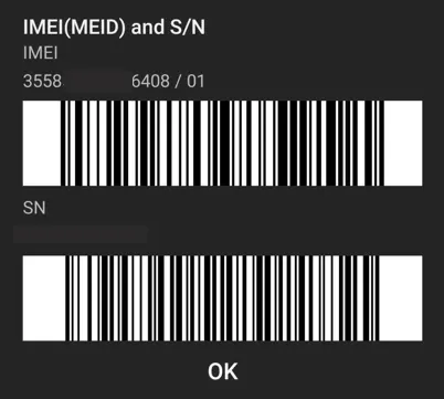 撥打 *#06# ,以下資訊將自動出現於螢幕上: