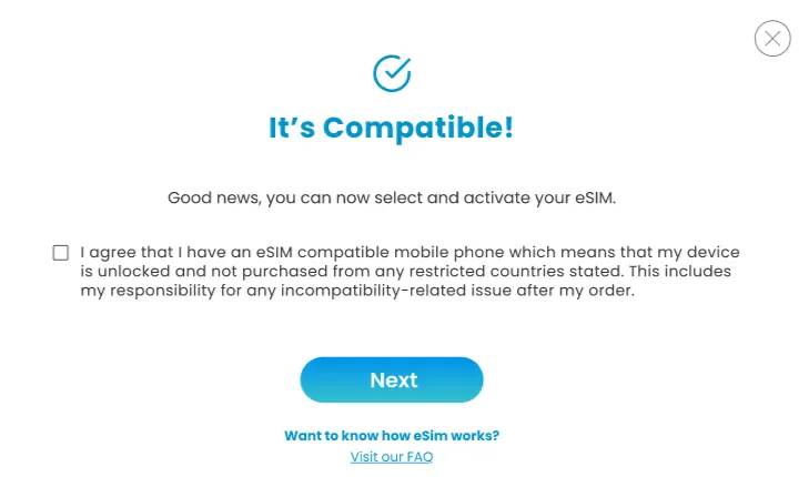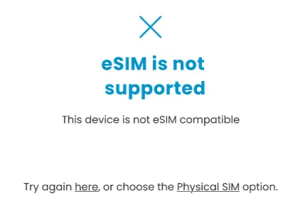 如果你的裝置並不支援 eSIM ,網頁將彈出以下提示: